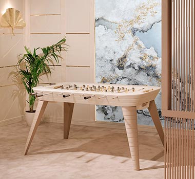 Vismara design ha voluto omaggiare la tradizione di un gioco molto radicato nel territorio e nella storia italiana creando il tavolo per il calcio balilla di lusso, simbolo di condivisione e intrattenimento di grande classe pensato sia per semplici amatori che per professionisti. Che sia calcio balilla da tavolo o si tratti invece di biliardini professionali, sempre sono il risultato di una ricerca profonda per uno spazio ideale, della voglia di raggiungere sempre nuovi obiettivi e dove il bello ed il lusso sono il grande traguardo da raggiungere e da oltrepassare nuovamente. Creato con uno stile contemporaneo, il tavolo da gioco attraverso l’uso di materiali preziosi, diventa un ricercato pezzo d’arte raffinato mantenendo la sua funzionalità tipica. Ogni modello è studiato e fabbricato da mani esperte che plasmano pezzi unici che sono soluzioni di arredamento con un’autentica espressione di sofisticatezza particolarmente rilevante nell’area entertainment e quindi nelle esclusive sale da giochi private. Creatività e intuizioni e uno slancio deciso nell’affrontare sfide professionali sempre più grandi sono state le vele che hanno portato Vismara da piccolo laboratorio artigianale nel cuore della Brianza, nel nord Italia, a divenire un brand di rilievo nel settore del mobile di lusso attraverso una rotta di eccellenza.