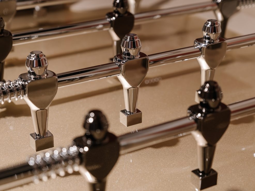Stadium è il nuovo tavolo per il calcio balilla, apprezzato sia per il design contemporaneo che per la sua natura ludica. Vismara trasforma un prodotto popolare in un raffinato esempio di design italiano La sua unicità risiede in ogni piccolo dettaglio, dai giocatori in acciaio dorato e cromato fino alle palline da gioco in sughero. La funzionalità di questo prodotto non viene assolutamente compromessa, ma anzi viene esaltata da alcune caratteristiche tecniche che rendono Stadium un prodotto professionale per gli amanti del Calcio Balilla.