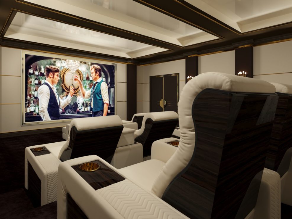 The Home Theater Room is a new way to conceive the home entertainment. Entirely designed and installed by Vismara, nothing is left to chance, and each detail can be customized. The clients can choose between four styles of theater seating: Onassis, Luxor, Chest and Comfort. For the film projection has been created a sophisticated portal which can contain up to 226”screen. The sound is another key point in the design of home cinema room, in fact Vismara provides elegant custom-made boiserie with built-in sound proofing panels. Vismara is able to design turn-key projects studying the best solution in order to satisfy even the most demanding requests, by placing particular attention to the furniture and to the cutting-edge A/V system technology.